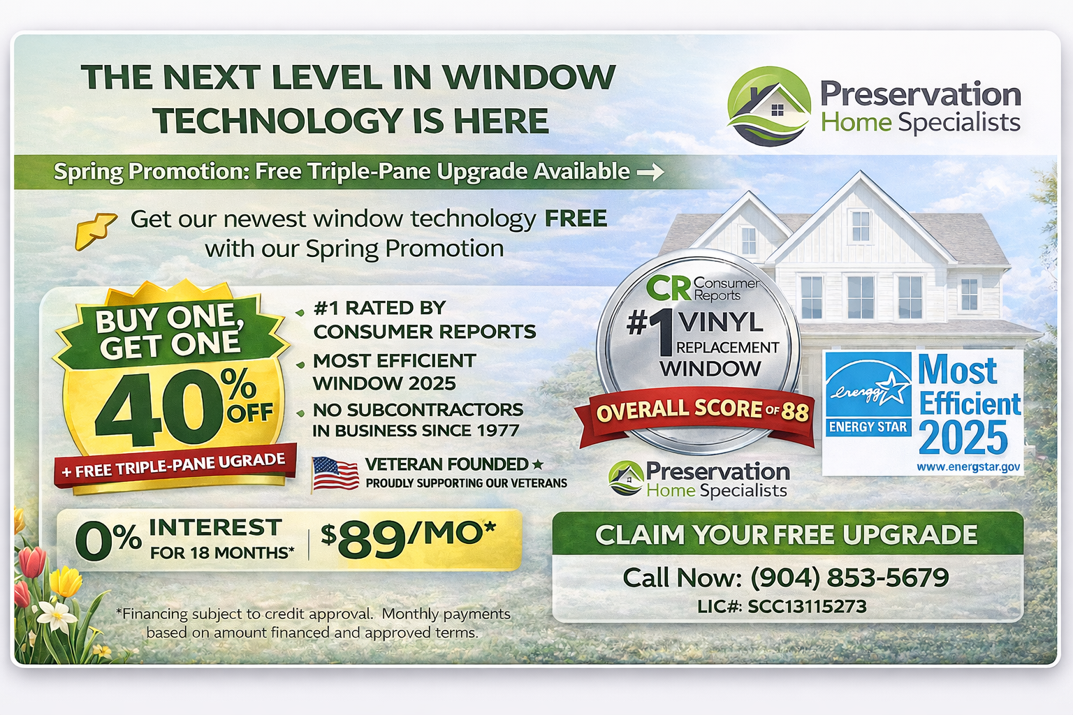 Jacksonville’s Exclusive 5-Home Window Offer – Buy One Get One 40% Off + Triple-Pane Glass